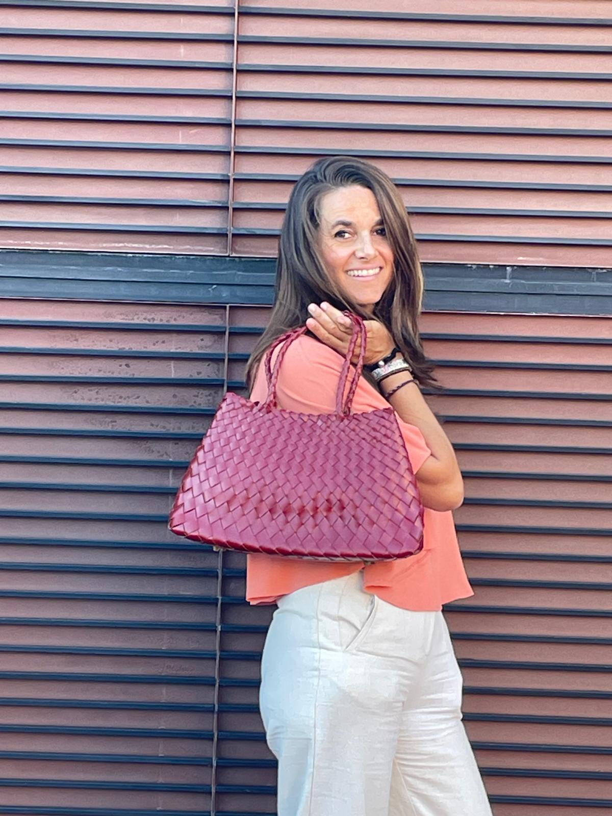El Bolso Milán llega para enriquecer la colección con un diseño que combina la tradición artesanal con una estética renovada. Su trenzado ancho y geométrico, diferente al de los clásicos Roma, aporta fuerza visual y un aire sofisticado que lo hace único.
