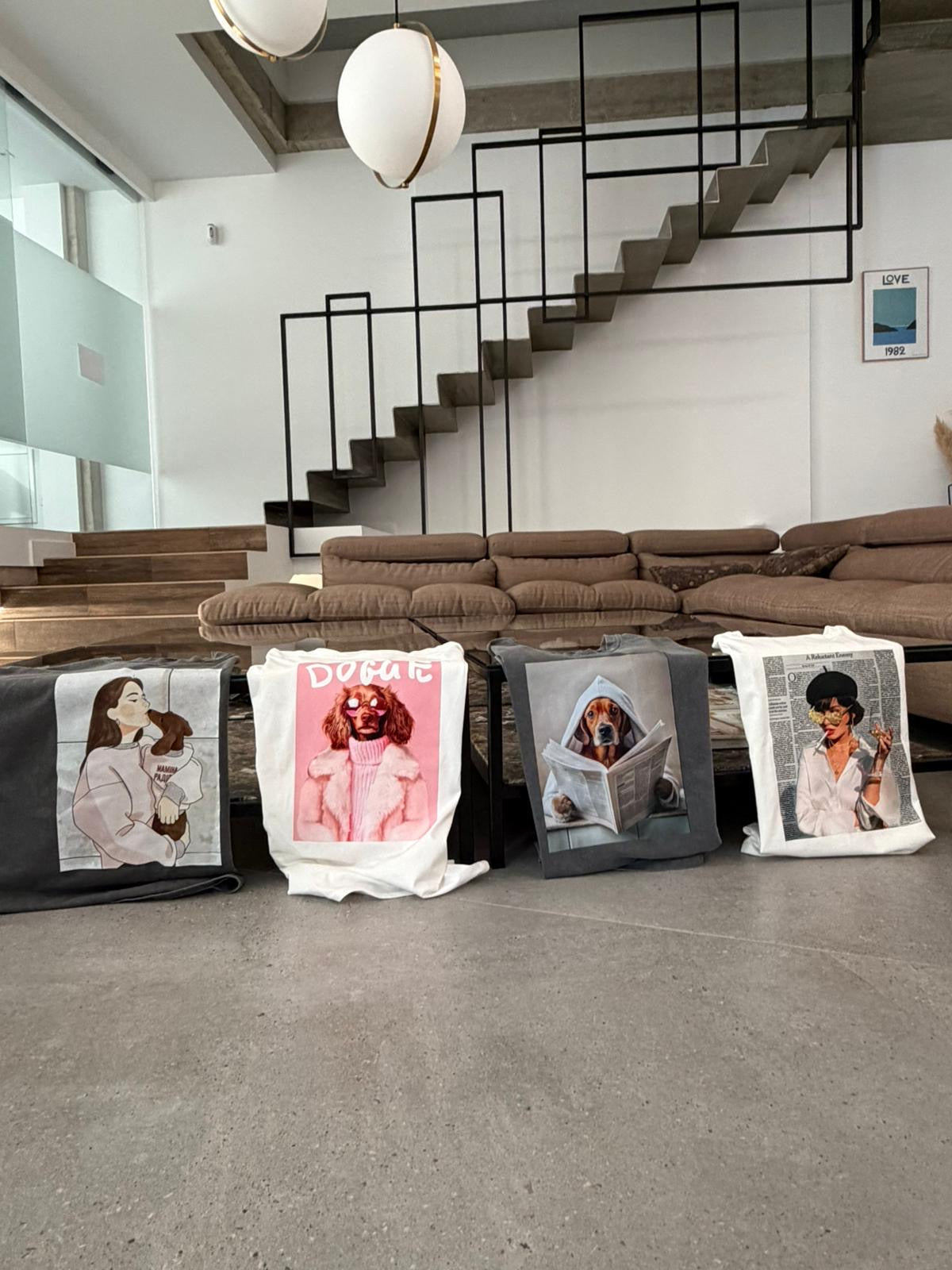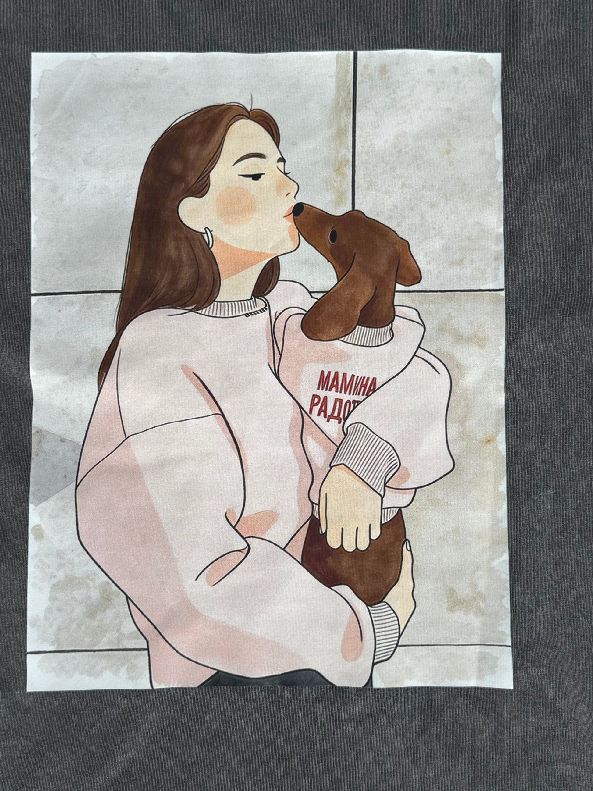 Este diseño es pura ternura en formato streetwear. Una ilustración de estilo minimalista que captura el abrazo entre una chica y su perro Teckel. El acabado gris desgastado de la camiseta suaviza los tonos pastel de la imagen, creando una prenda nostálgica y llena de sentimiento.
