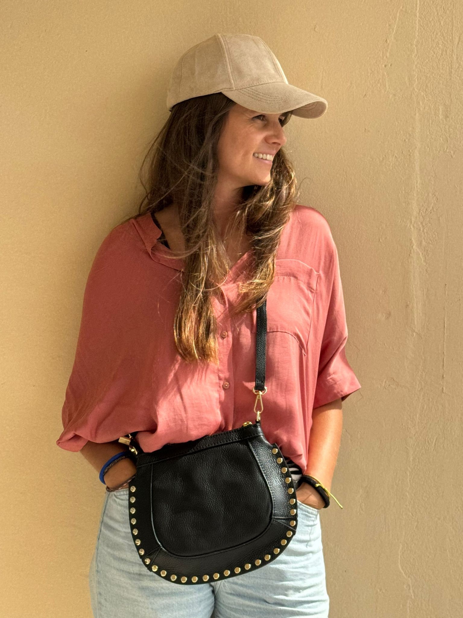 Pequeño pero con mucha personalidad. Patricia es ese bolso que transforma cualquier look con solo colgártelo del hombro. Su silueta redondeada y los detalles de tachuelas doradas aportan carácter y un aire casual con alma rockera, sin perder elegancia.