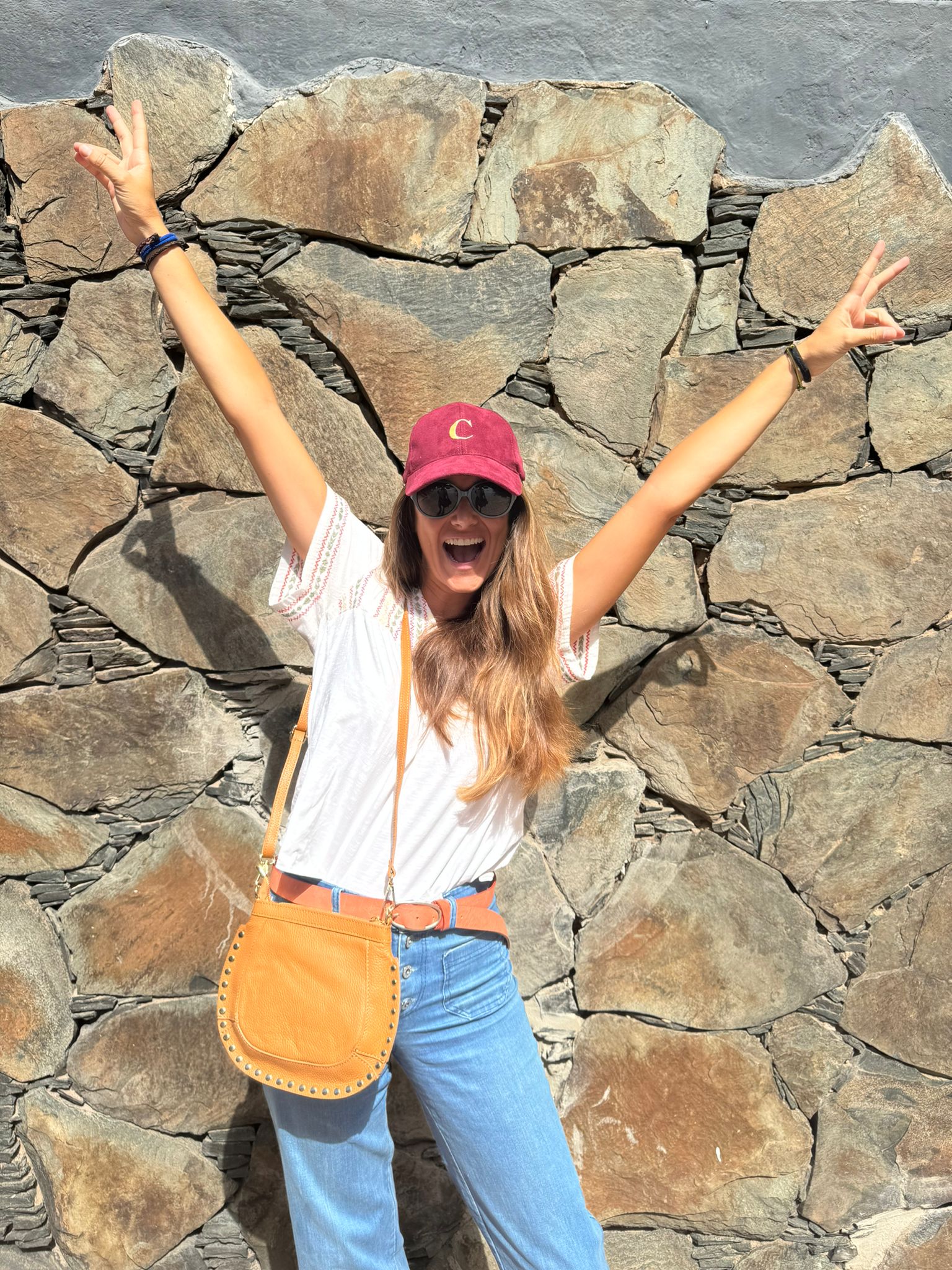 Bandolera de piel con tachuelas doradas