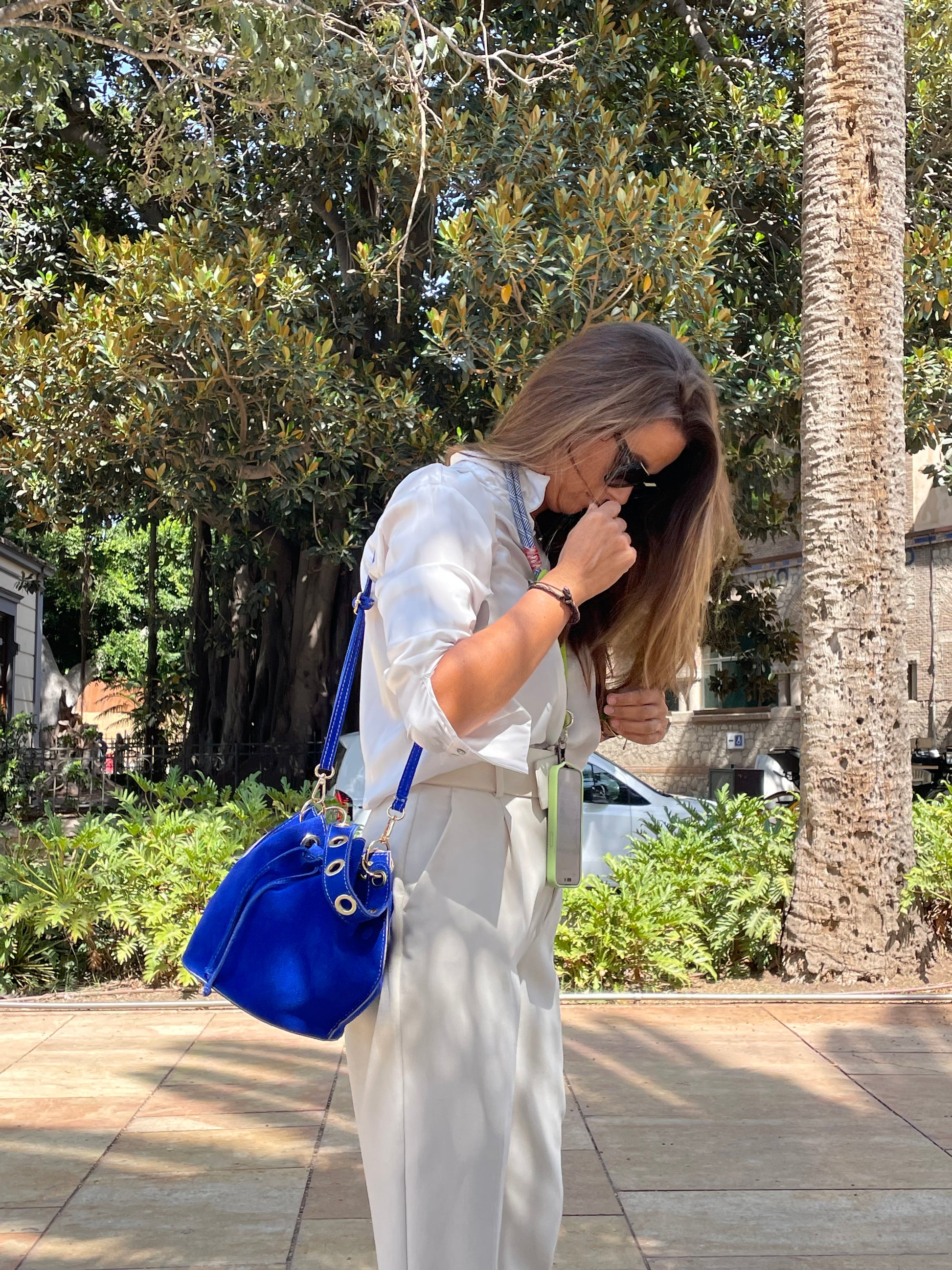 Su diseño estructurado pero flexible permite llevarlo con estilo tanto al hombro como cruzado, gracias a su correa larga regulable y su asa corta. Cierre de cordón con detalles metálicos que aportan un toque contemporáneo a un modelo de inspiración clásica. Compacto, versátil y con personalidad, es el aliado perfecto para dar color a cualquier look.
